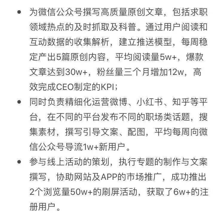 在写简历时一定要认真解读HR写的JD,比如这个新媒体运营的JD: